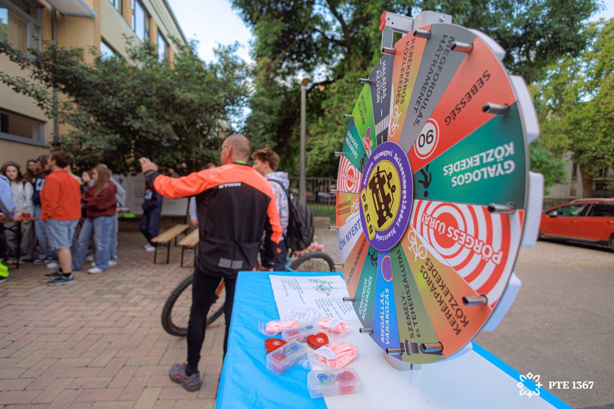 A rendezvény megszervezését a PTE Zöld Egyetem Program is támogatta, a reggeli mellett ajándékcsomagokat ajánlott fel, amelyeket a kerékpárral érkezők között sorsoltunk ki. Minden biciklis résztvevő friss szendvicsekből, zöldségekből, gyümölcsökből és italokból álló reggelit kapott, így nemcsak egészséges falatokkal, hanem közösségi élménnyel is indíthatták a napot. A jó hangulatot tovább fokozta a balesetmegelőzési szerencsekerék, valamint az egyetemi tombola, amelyet Tarnai Dóra tanárnő és önkéntesei biztosítottak.