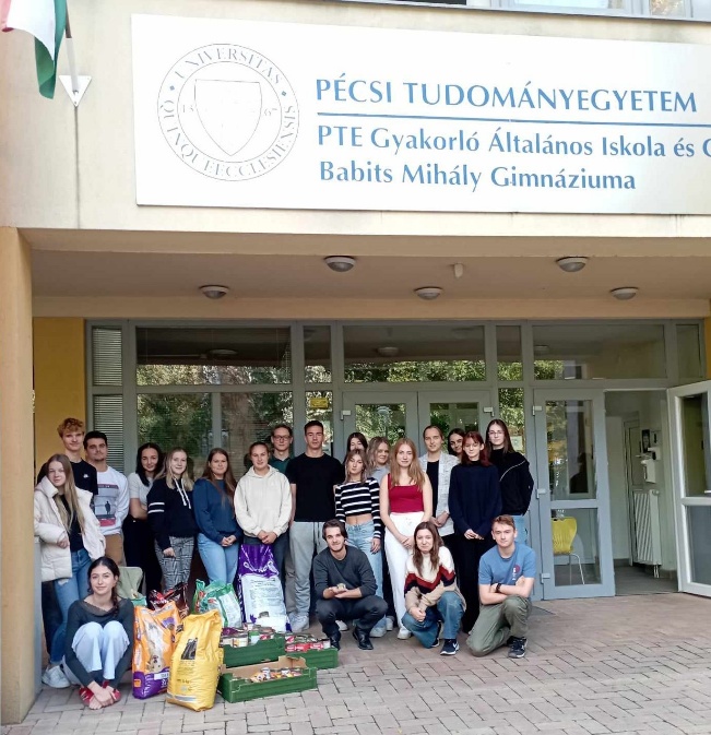 Az Állatok Világnapja alkalmából 2024. október 4-én kutyatáp gyűjtést szerveztünk iskolánkban. A 9. évfolyam által összegyűjtött tápokat a 12. C osztály juttatta el a Misina Egyesület számára.