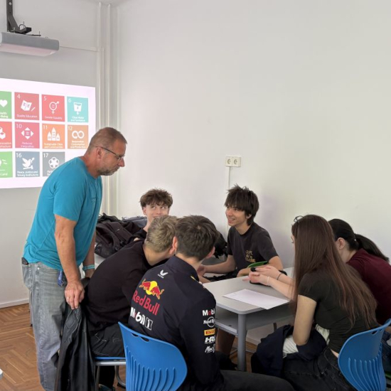 A PTE Műszaki és Informatika Karának külföldi diákjai, Bianca Uwera (Uganda), Uleimanova Nazerin (Oroszország) és Yahaya Nabilah (Malájzia) tartottak 9.b osztályos diákjainknak angol nyelvű, interaktív tanórát a fenntartható fejlődésről.